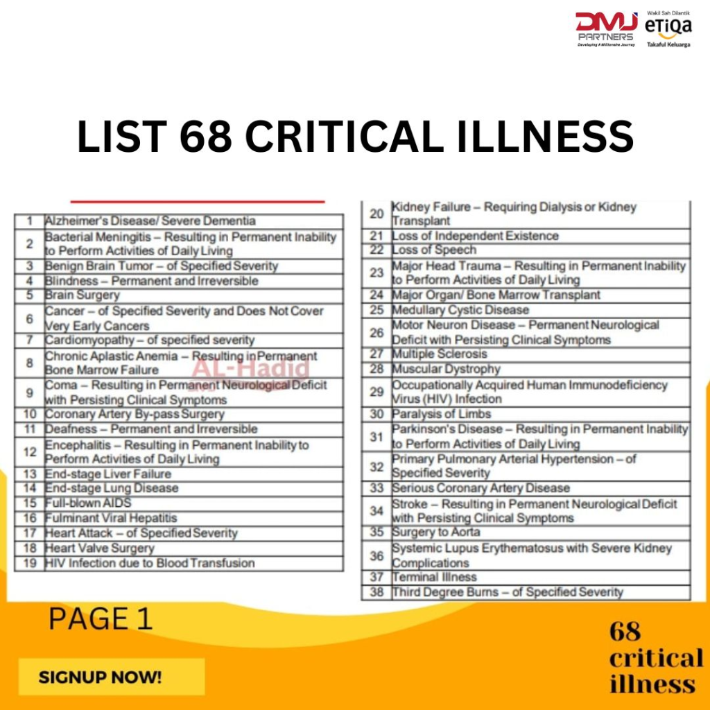 Benefit Aafiah Care Pelan (Income Protection) Lindungi 68 Penyakit Kritikal