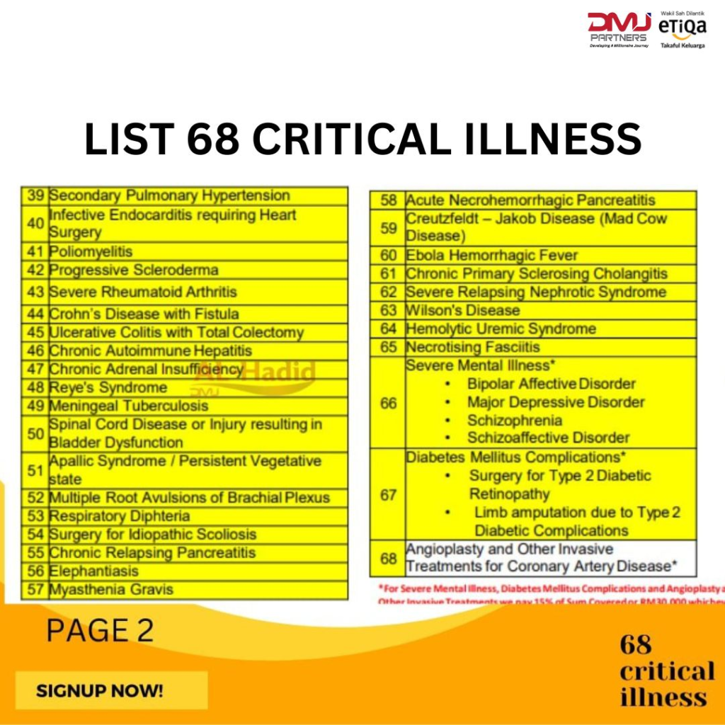 Benefit Aafiah Care Pelan (Income Protection) Lindungi 68 Penyakit Kritikal