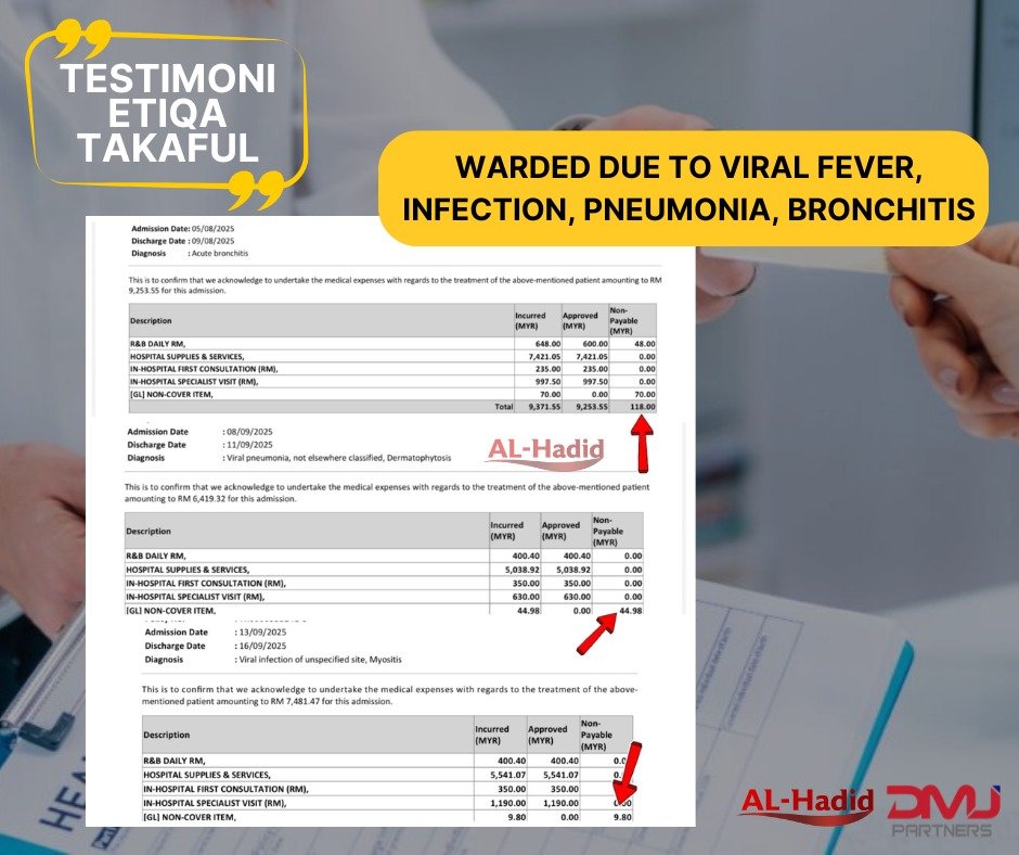 “Masuk hospital berkali-kali sebab demam & jangkitan, alhamdulillah semua kos ditanggung takaful.”