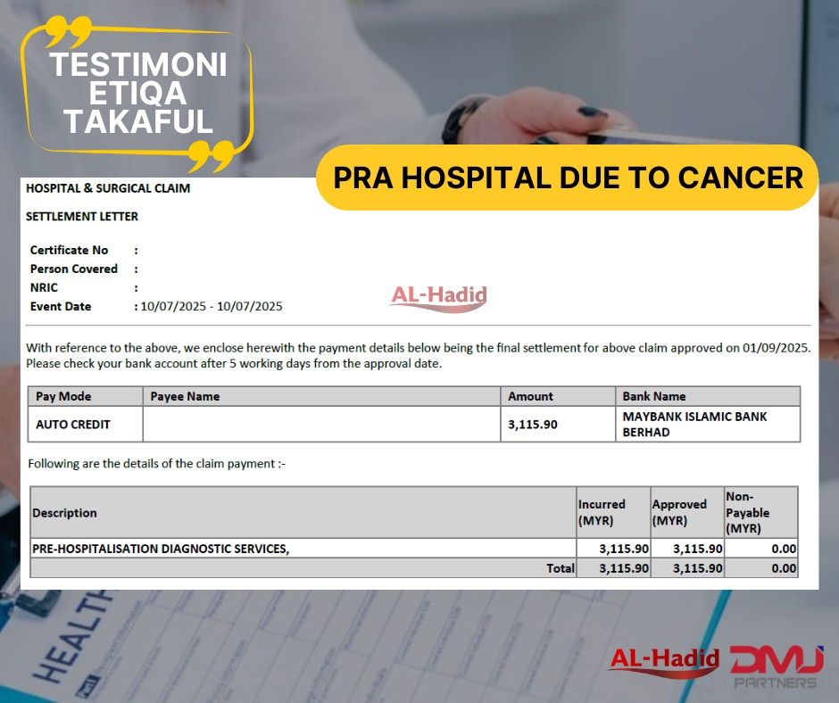 π Tuntutan diluluskan & pembayaran sebanyak RM3,115.90 terus dikreditkan ke akaun bank peserta.